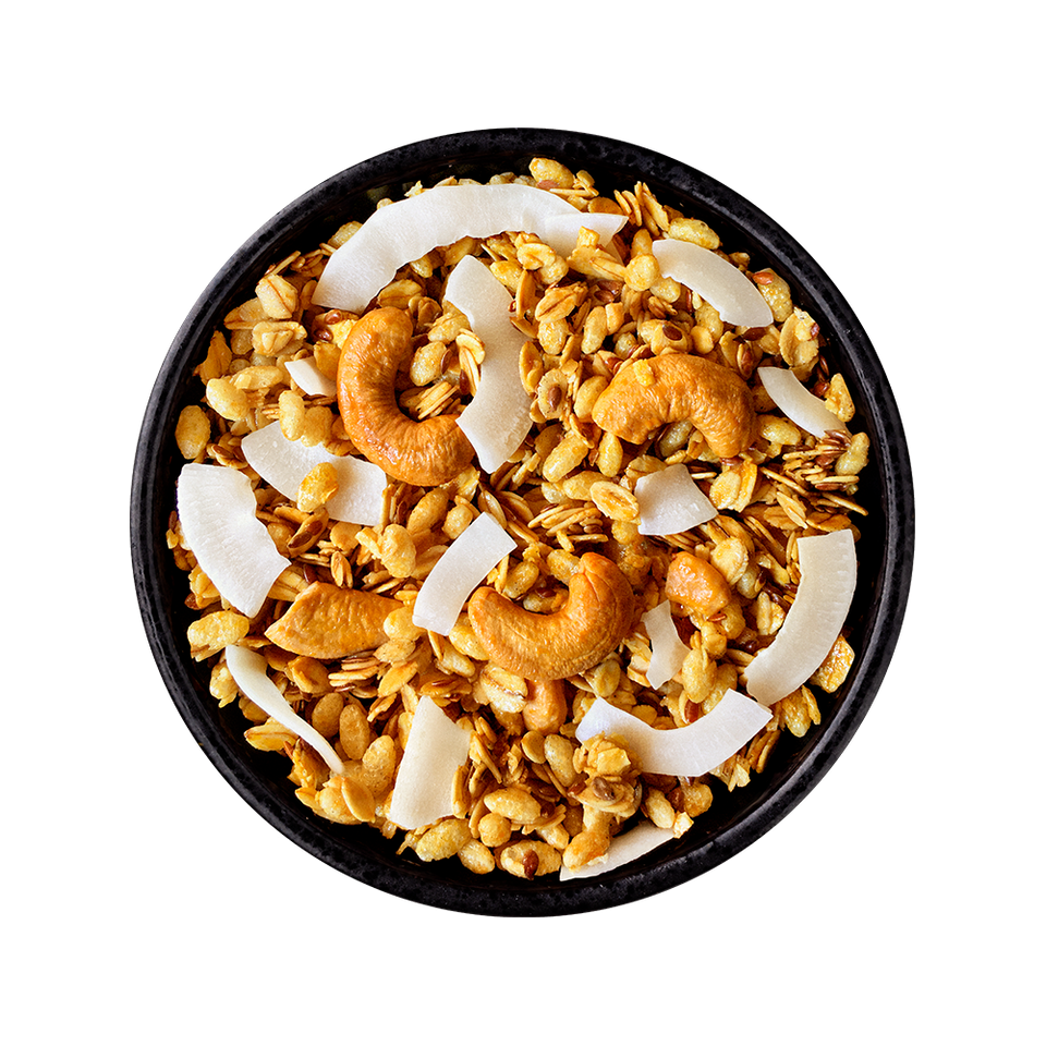 A Granola Australia Coco e Caju é feita artesanalmente, garantindo clusters (aqueles pedaços crocantes que todo mundo ama) maiores e mais saborosos. A combinação tropical do coco em lascas com a riqueza nutricional da castanha-de-caju cria uma experiência de sabor suave, adocicada na medida certa e rica em gorduras boas.