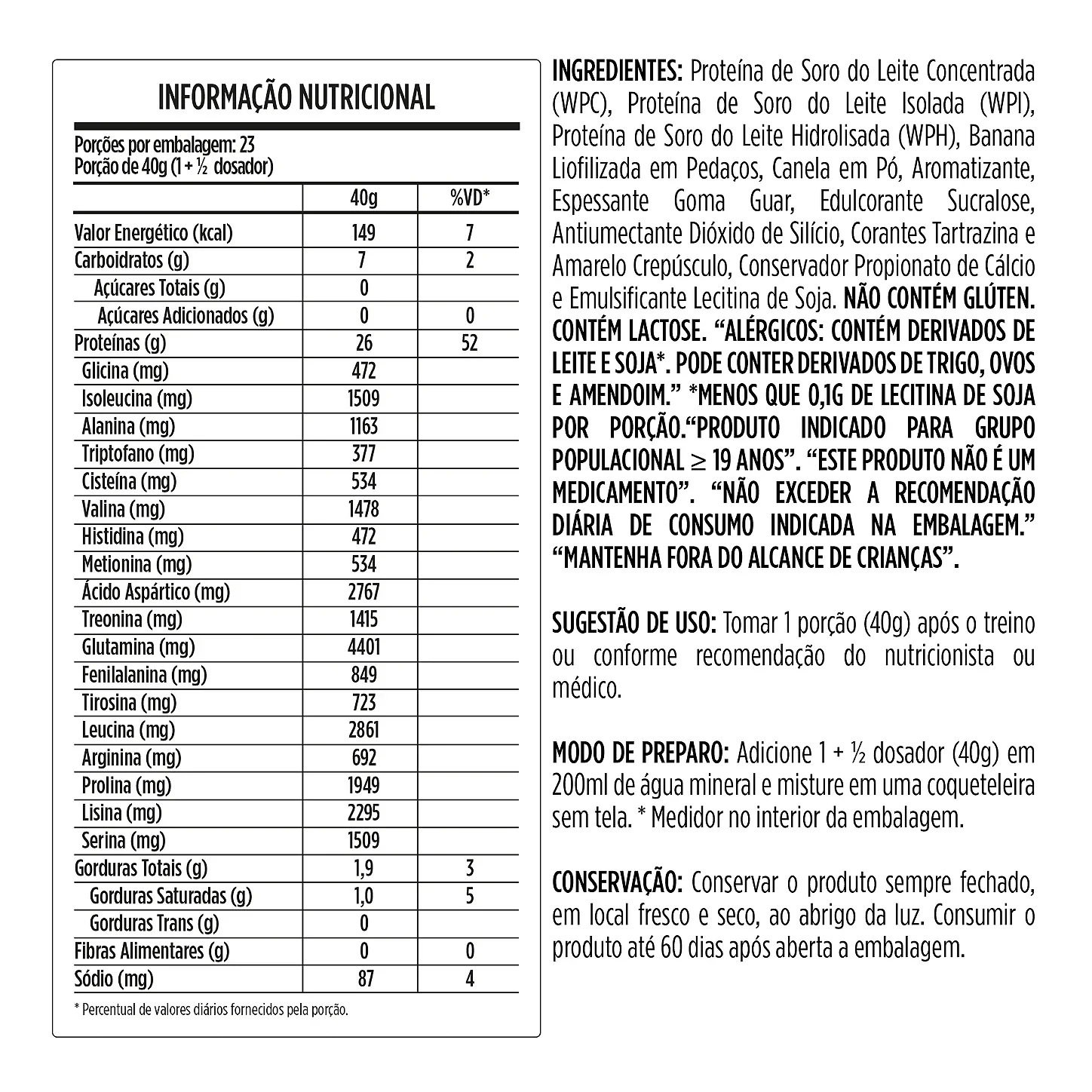 Blend Proteico Premium: Combinação de Proteína Concentrada (WPC) e Isolada (WPI) do soro do leite, garantindo diferentes velocidades de absorção para uma recuperação completa.
