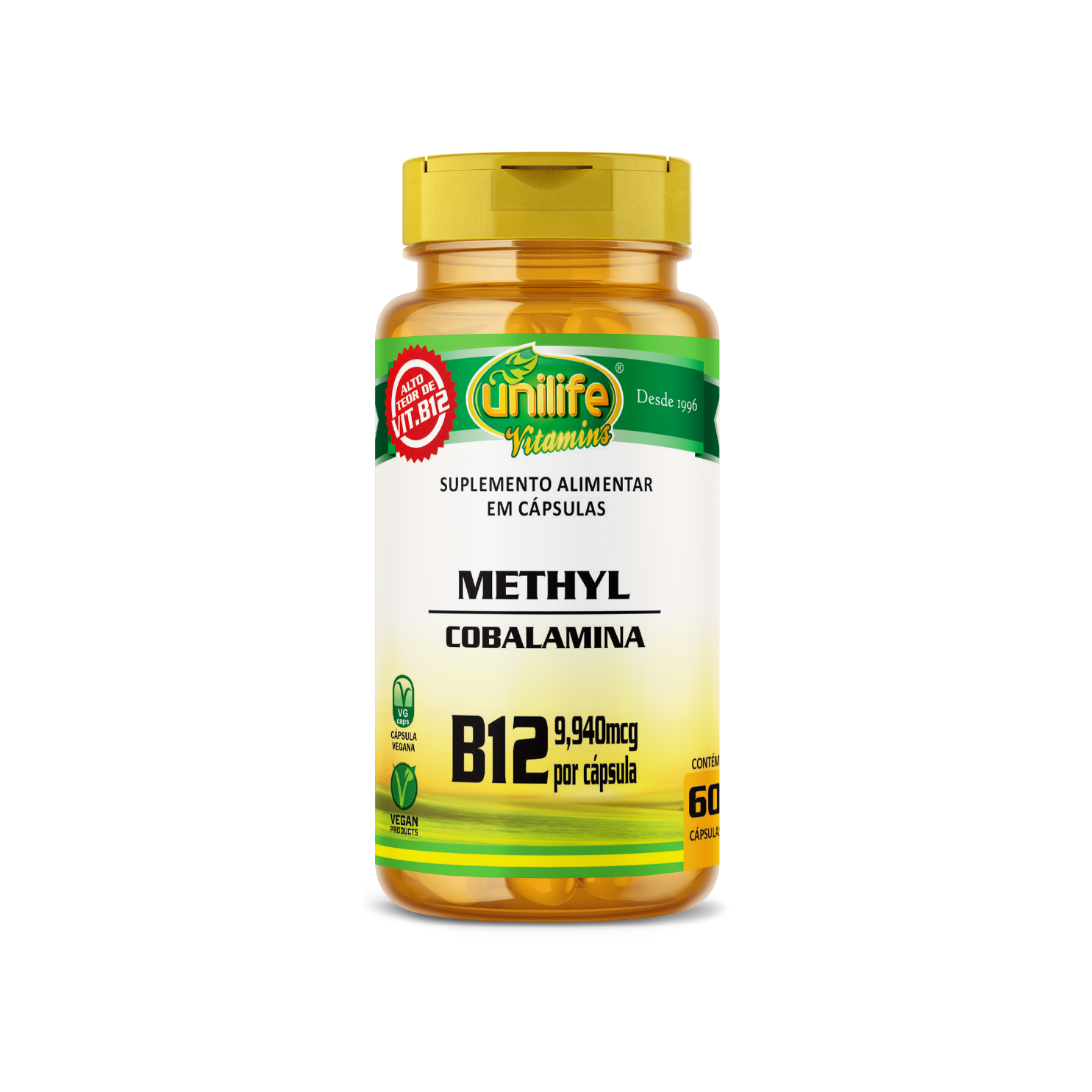 Com mais de 25 anos de tradição, a Unilife Vitamins entrega um produto de pureza e potência garantidas. Nossa Vitamina B12 é produzida com os mais altos padrões de qualidade, em cápsulas vegetais, sendo ideal para veganos e vegetarianos que frequentemente apresentam deficiência deste nutriente vital.